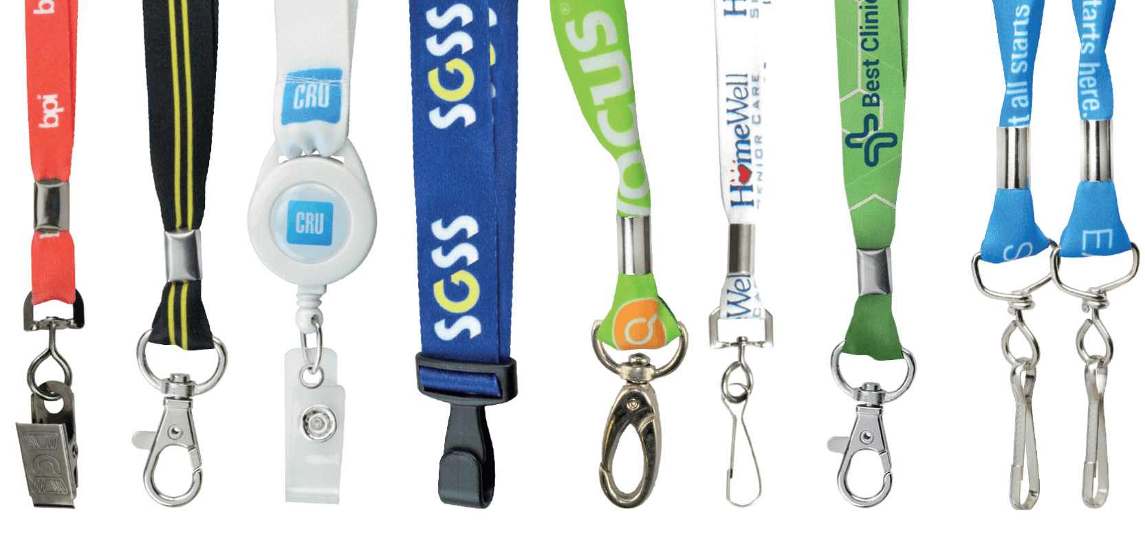 Sie haben die Möglichkeit, die gewünschte Befestigung für Ihr Umhängeband zu wählen. Welche Befestigung Sie wählen, hängt davon ab, was Sie befestigen möchten. Um einen Namensschildhalter oder ein Namensschild mit Öffnung direkt aufzuhängen, sind Karabiner und Metallclips die perfekten Optionen. Wenn Sie Schlüssel direkt am Umhängeband befestigen möchten, entscheiden Sie sich für den Schlüsselring aus Metall. Wir haben auch eine Kunststoffbefestigung, die Sie statt der Metallbefestigung verwenden können – ideal für ein Umhängeband im medizinisches Bereich. Auf Anfrage ist es möglich, Ihr Lanyard mit mehreren Befestigungen zu versehen. Optional können Sie auch eine Sicherheitsbefestigung hinzufügen, die dafür sorgt, dass sich das Band öffnet, wenn eine zu starke Zugkraft ausgeübt wird, um Erdrosselungsgefahr zu vermeiden.