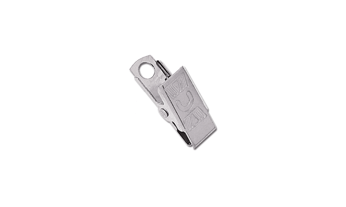 Dank dieser Bulldogklemme mit geprägtem "U" aus vernickeltem Stahl bleibt Ihr Ausweis unter allen Umständen in Position! Die Bulldogklemme hat ein geprägtes "U" und ist aus haltbarem, vernickeltem Stahl gefertigt. Der Bulldog-Clip ist mit einem Schaftloch versehen und mit einer überlappenden Backe ausgestattet. Die geprägte "U"-Bulldogklemme ermöglicht eine schnelle und einfache Befestigung an Ausweisen oder Zugangskarten.