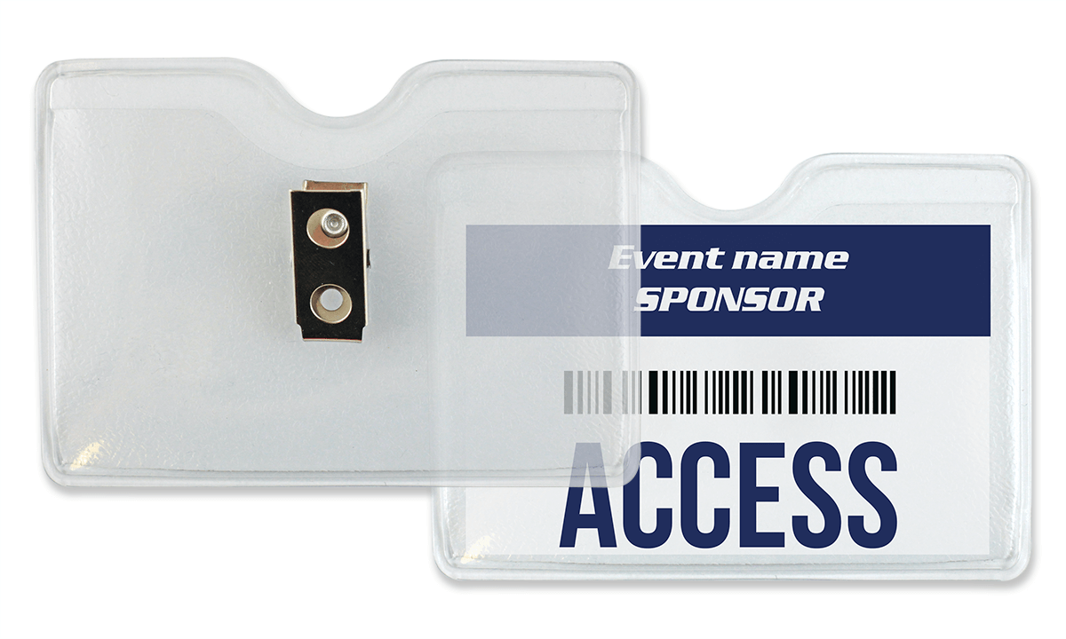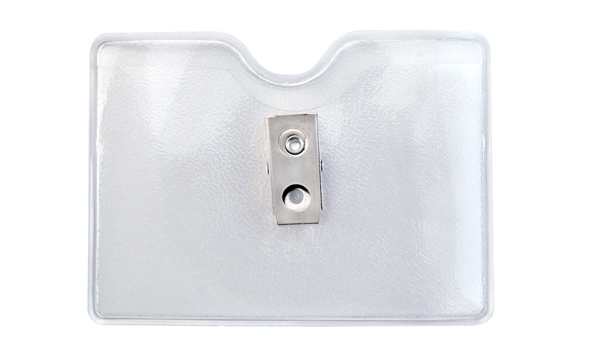 - Dieser horizontale Halter für Karten in Daten-/Kreditkartengröße verfügt auf der Rückseite über einen handlichen drehbaren Krokodilclip.