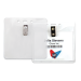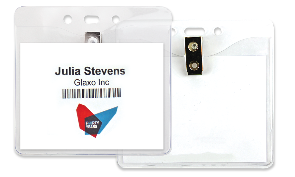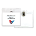 Er lässt sich mit der drehbaren Briefklemme oder, dank der Schlitzlöcher und der doppelten Löcher, mithilfe eines Ausweisjojos, eines Schlüsselbands oder einer Kette ganz leicht an der Kleidung anbringen.